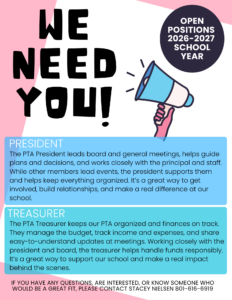 PTA Elections - New Positions Open for 26-27
